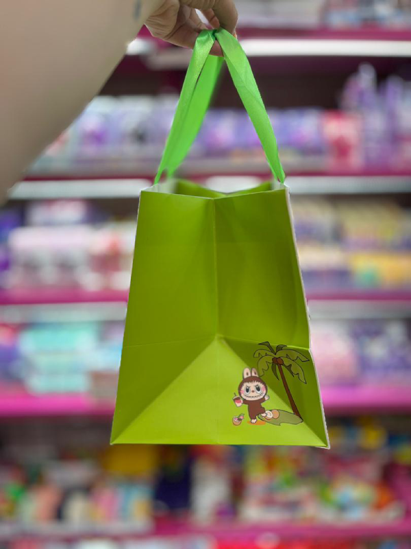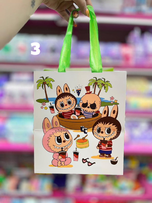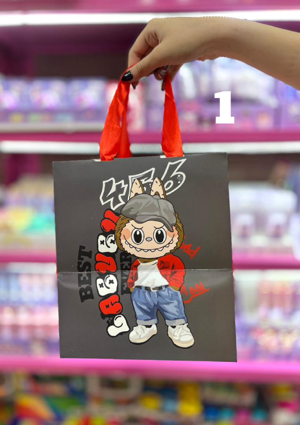 بگ کادویی کف پهن طرح لبوبو ابعاد ۲۰*۲۴*۲۴
