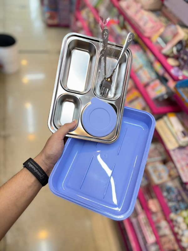 ظرف غذا داخل استیل به همراه قاشق چنگال استیل و کاسه استیل